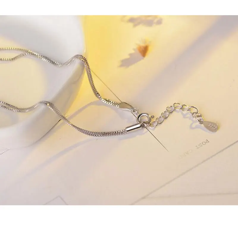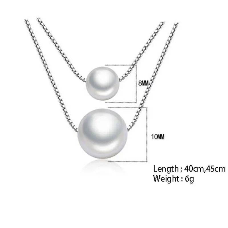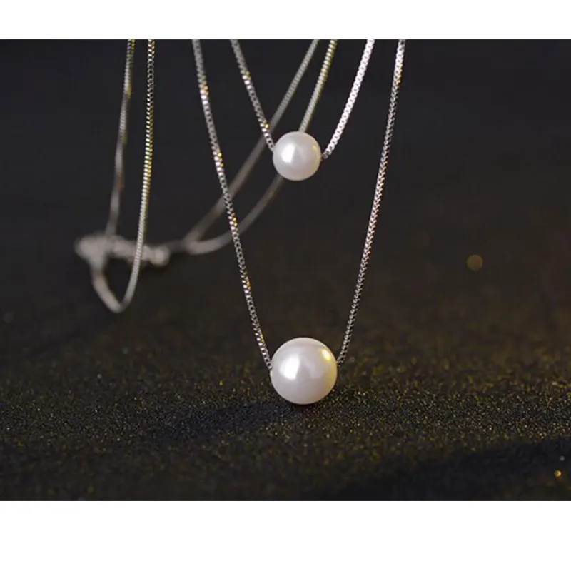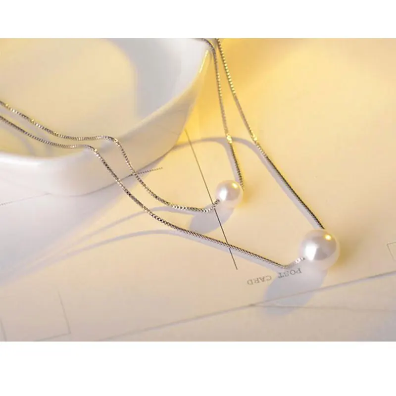 Promo Anenjery 925 Sterling Silver Necklace Double Layer Chain Simulated Pearl Choker Necklaces & Pendant