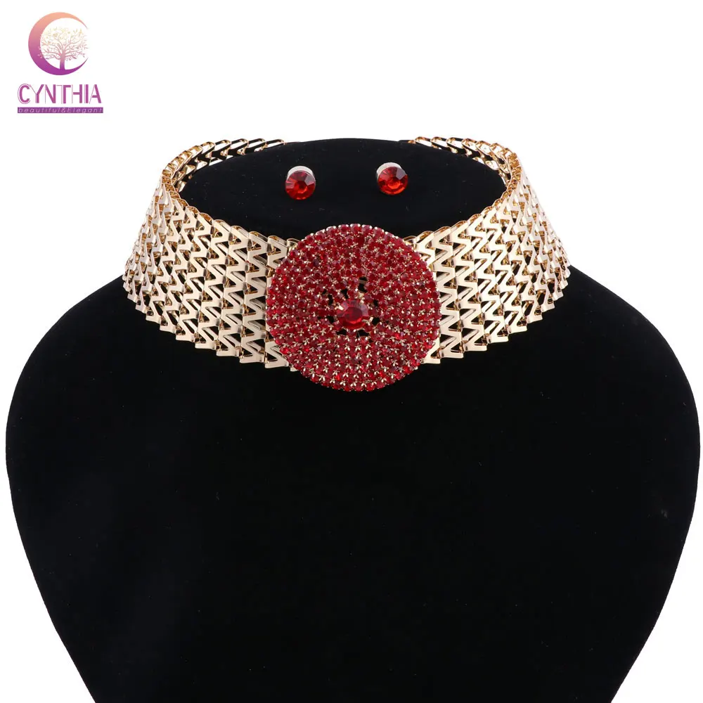 Best CYNTHIA Wedding Jewelry Sets Red Crystal Bridal Jewelry Set Gifts Gold Color Choker Necklace Earrin