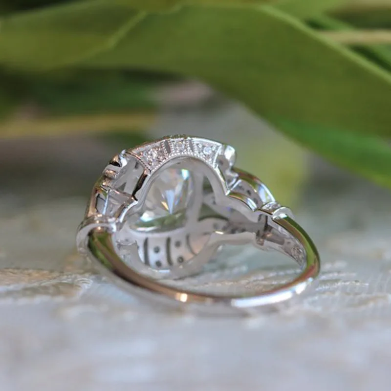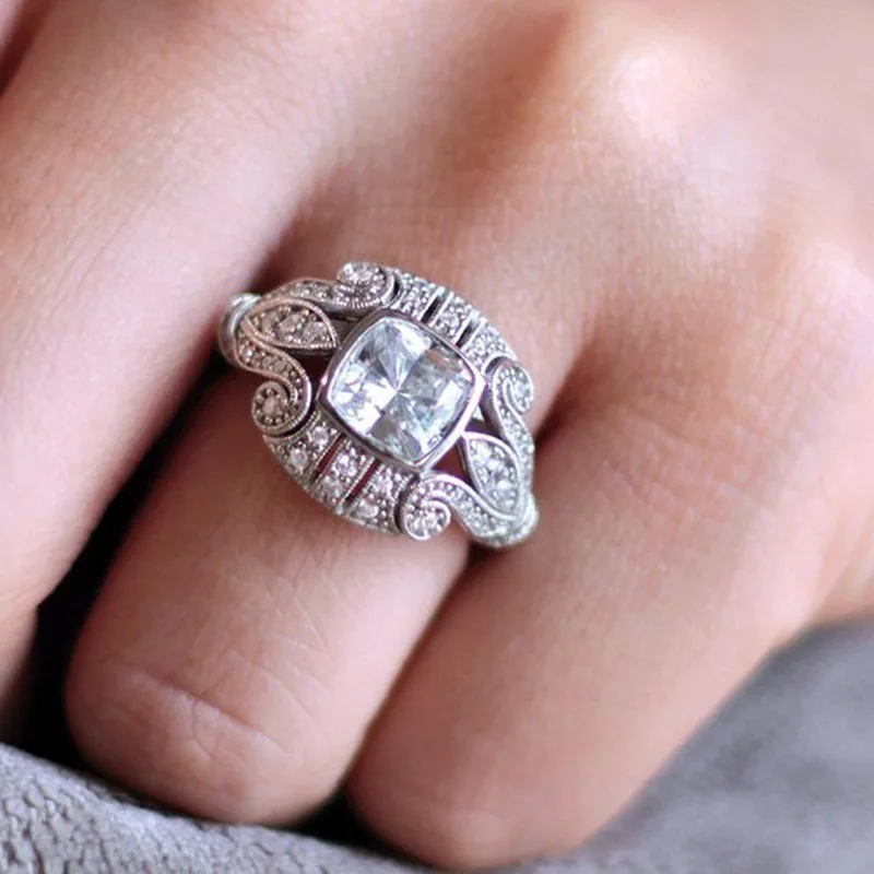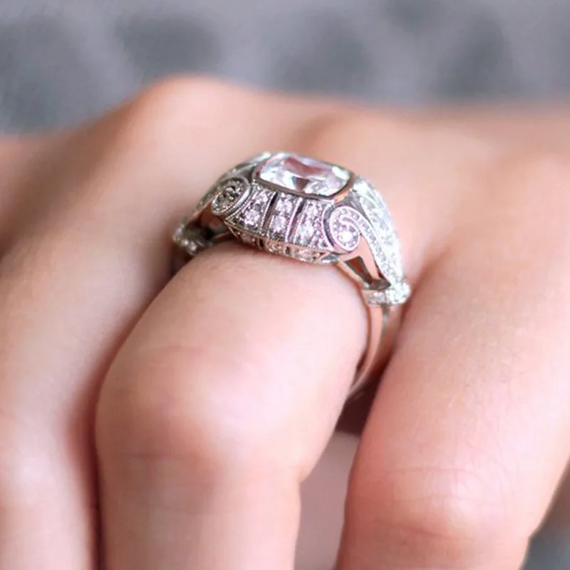 Best Silver Color Classic Flower Female Cubic Zirconia Stone Ring Unique Pattern Jewelry For Wedding Rin