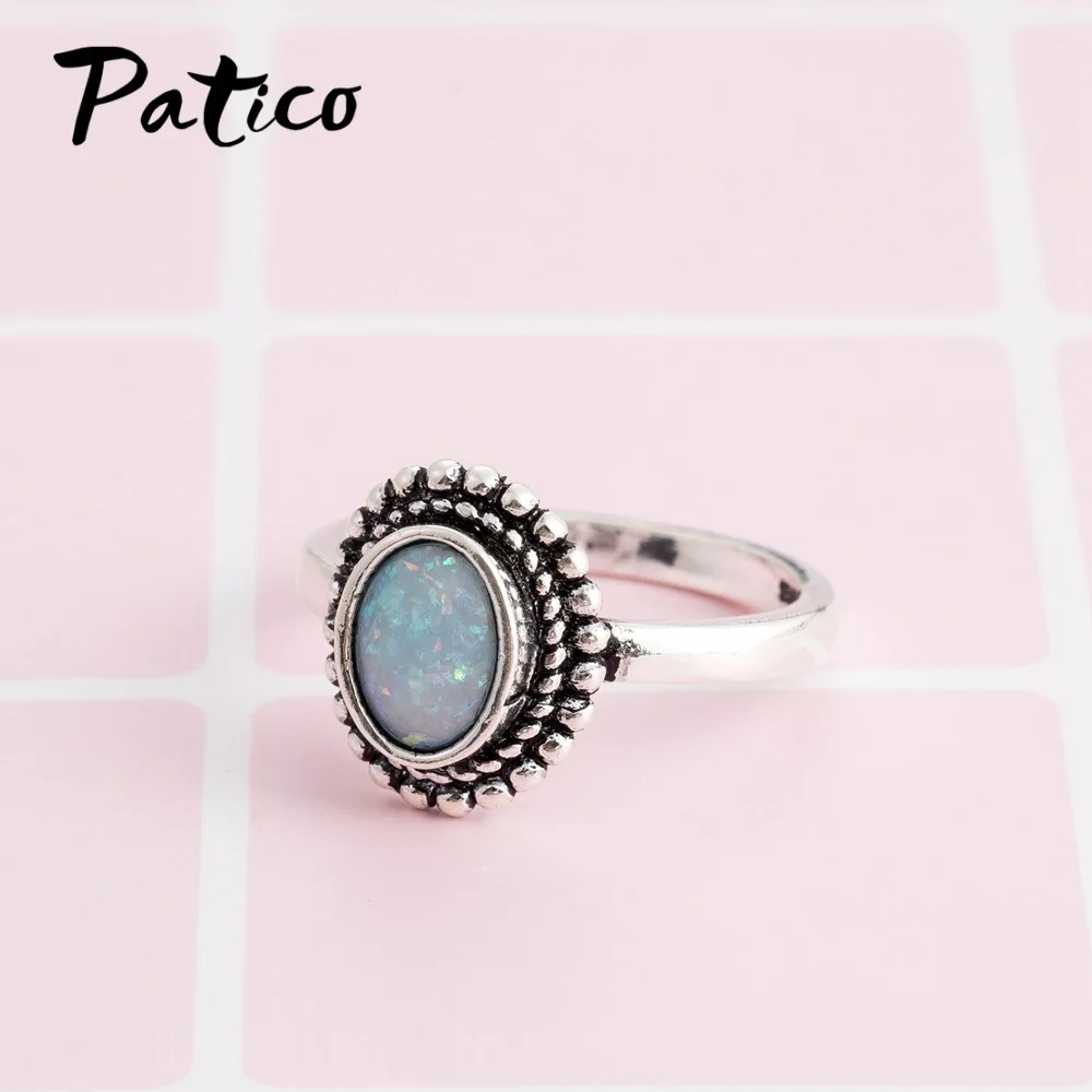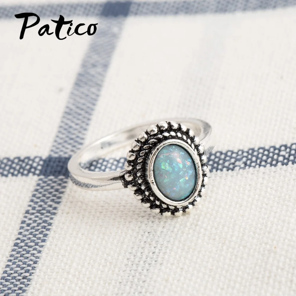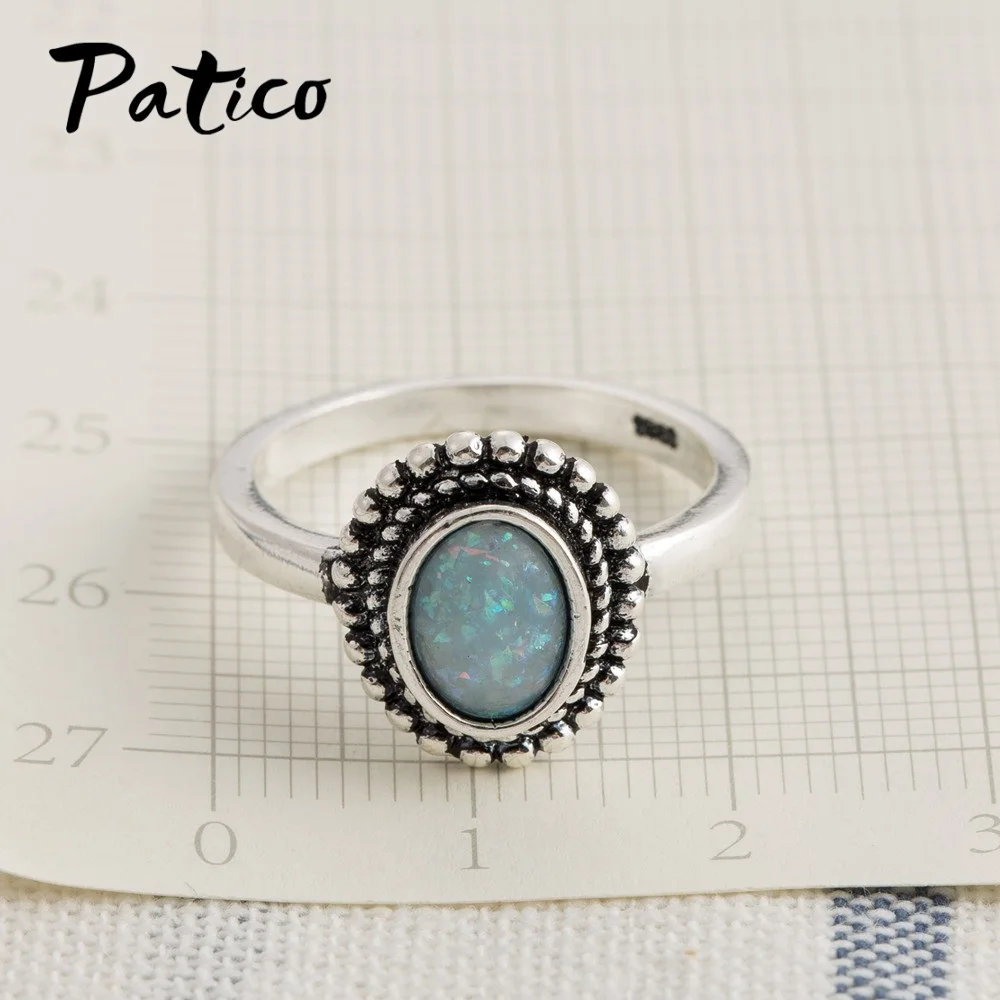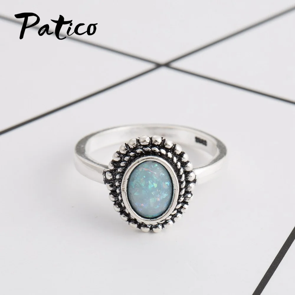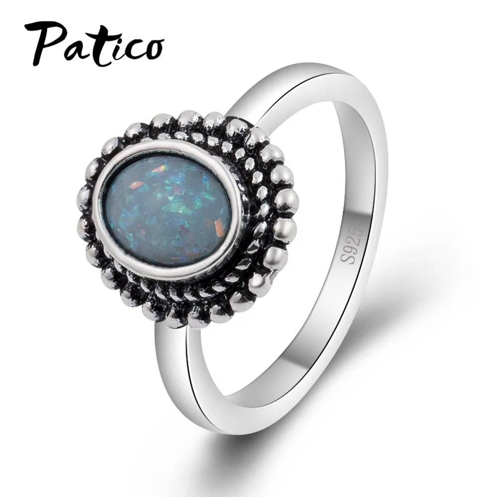 Best Trendy Vintage Opal Stone Ring For Women 925 Sterling Silver Black Antique Rhinestone Jewelry For W
