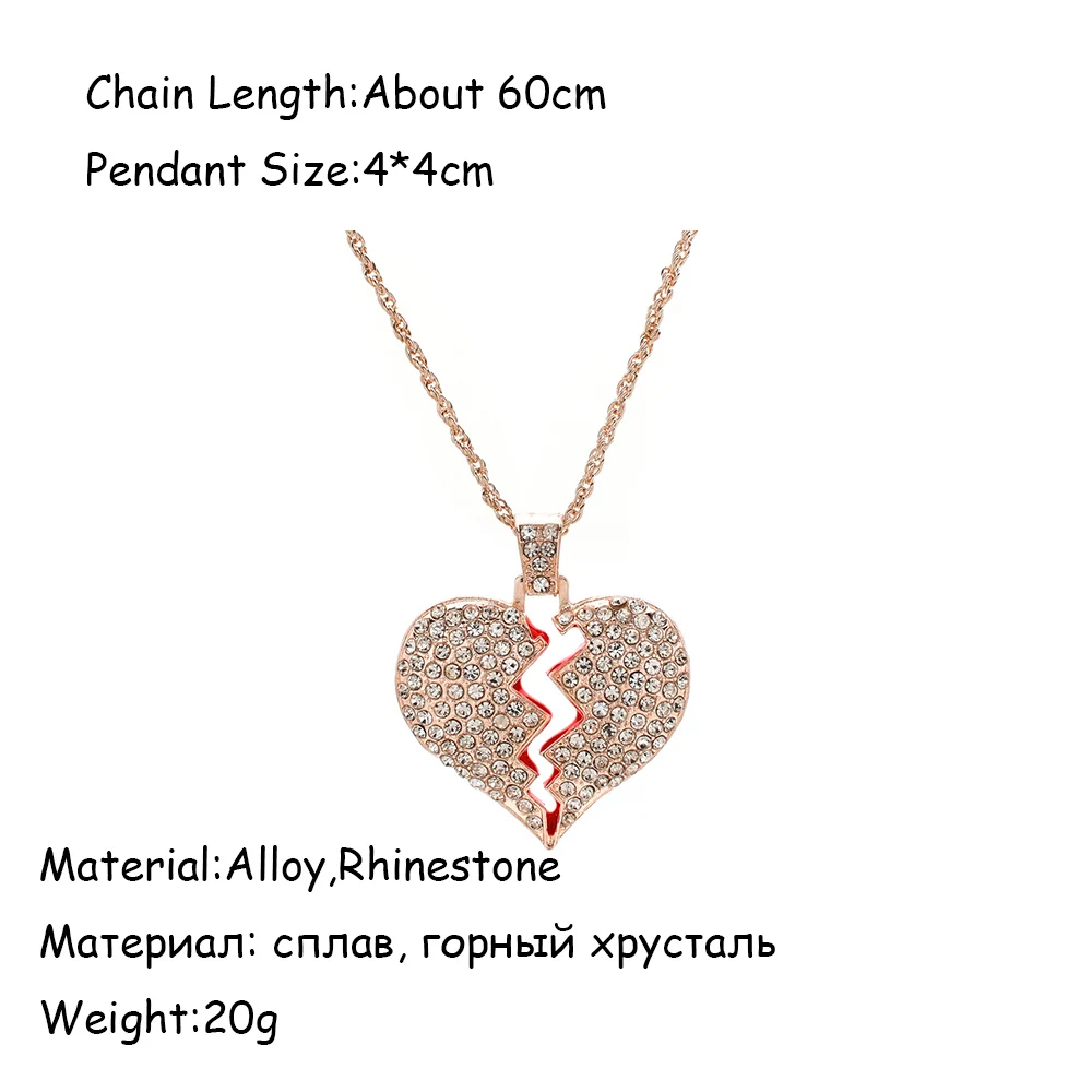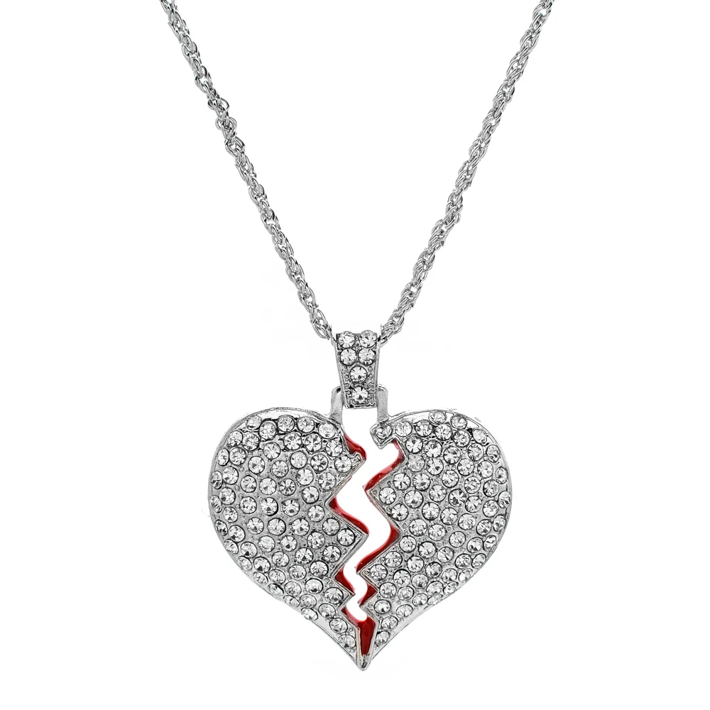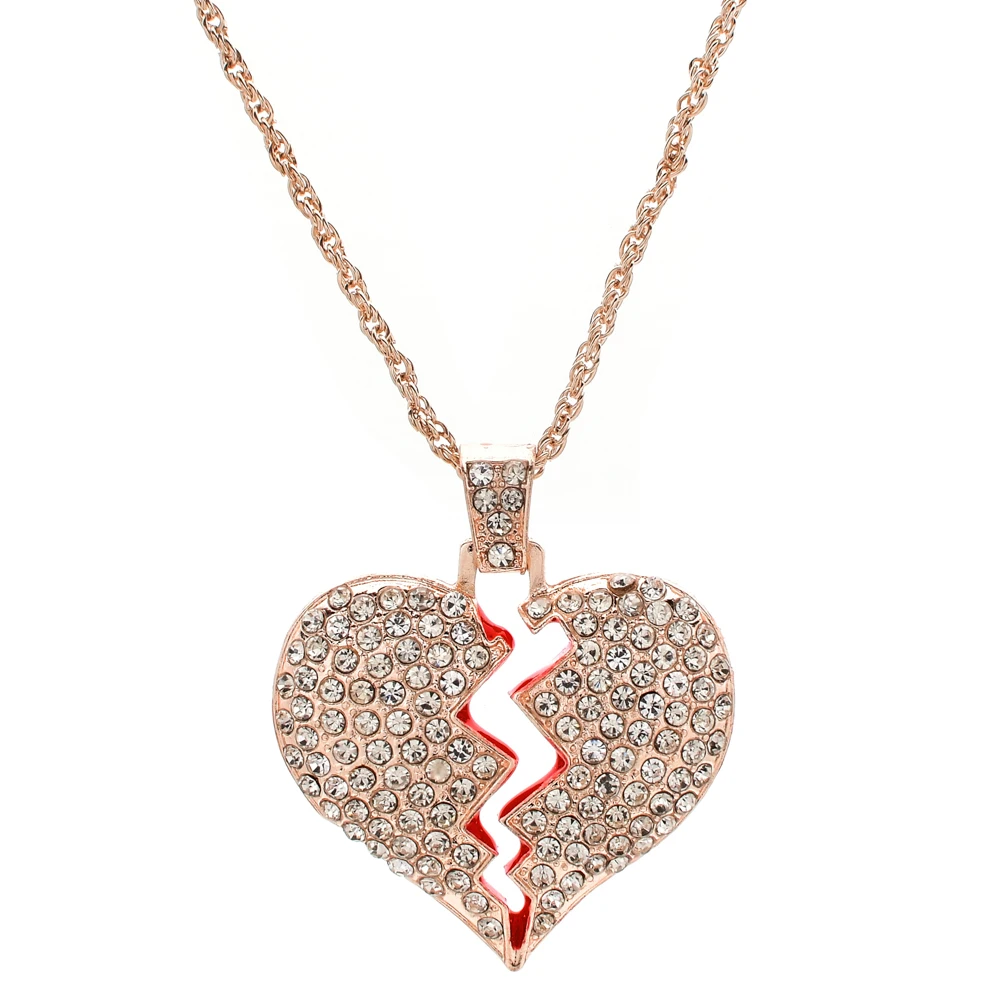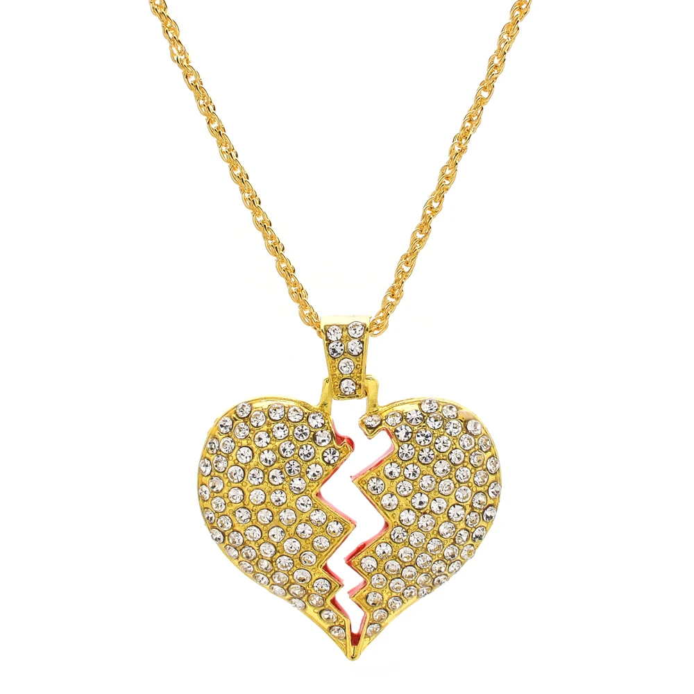 Buy Fashion Women Broken Heart Iced Out Chain Pendant Necklace Statement Gold Color Cubic Zircon Neckla