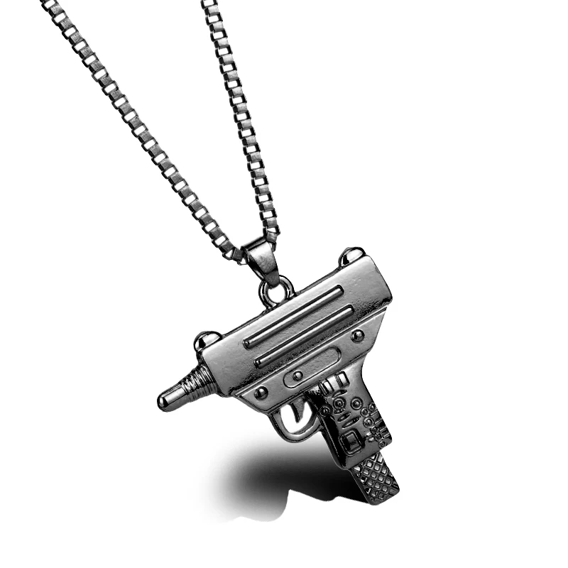 New HEYu Pistol Gun Uzi Necklace Star Jewelry Men Hip Hop Dance Charm Franco Chain Hiphop Gaes Golden M