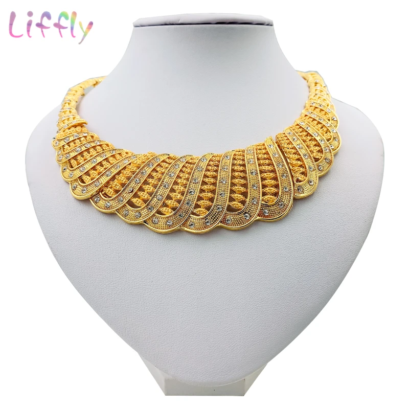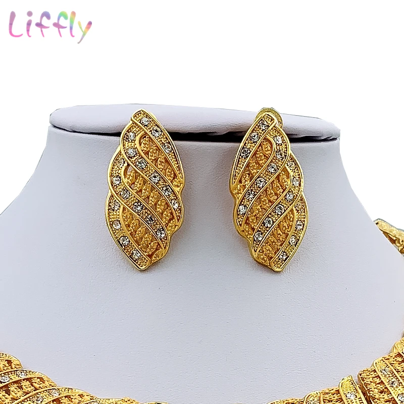 New Liffly Fashion Bridal African Jewelry Set Beautiful Wave Necklace Earrings Ring Bracelet Female Nig