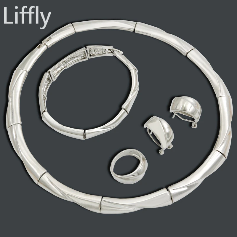 New Liffly Wedding Gift Dubai Bridal Jewelry Sets Gold Fashion Geometric Jewelry Nigerian Jewelry Set f
