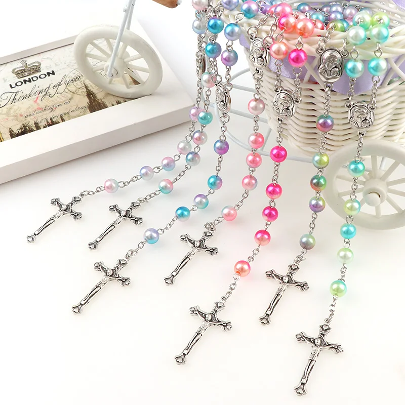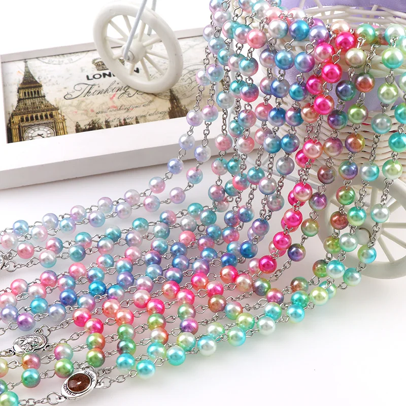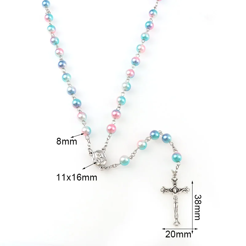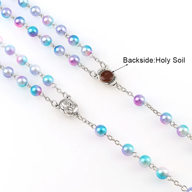 Best New Starry Sky Color Rosary 8mm Round Pearl Beads Catholic Rosary With Holy Soil Medal Crucifix Pra