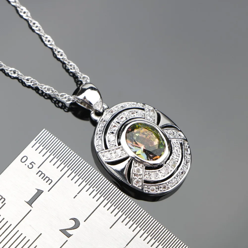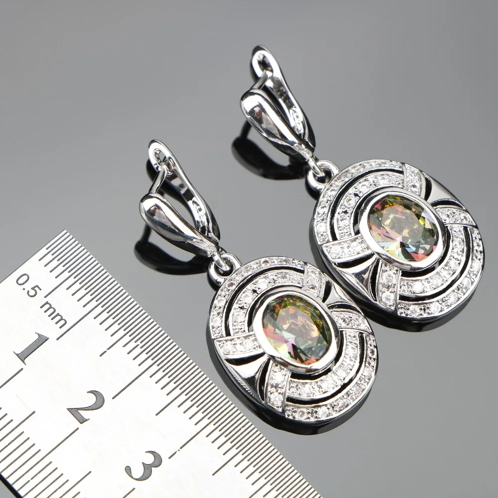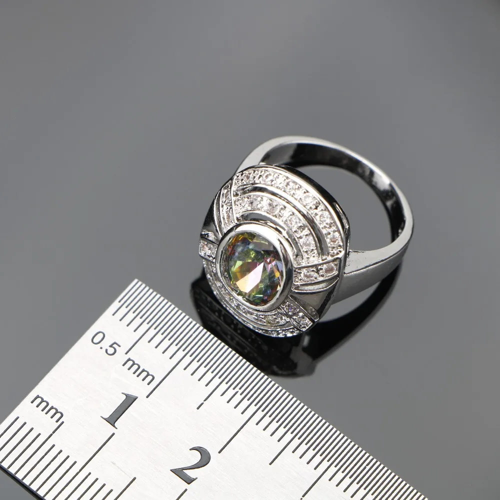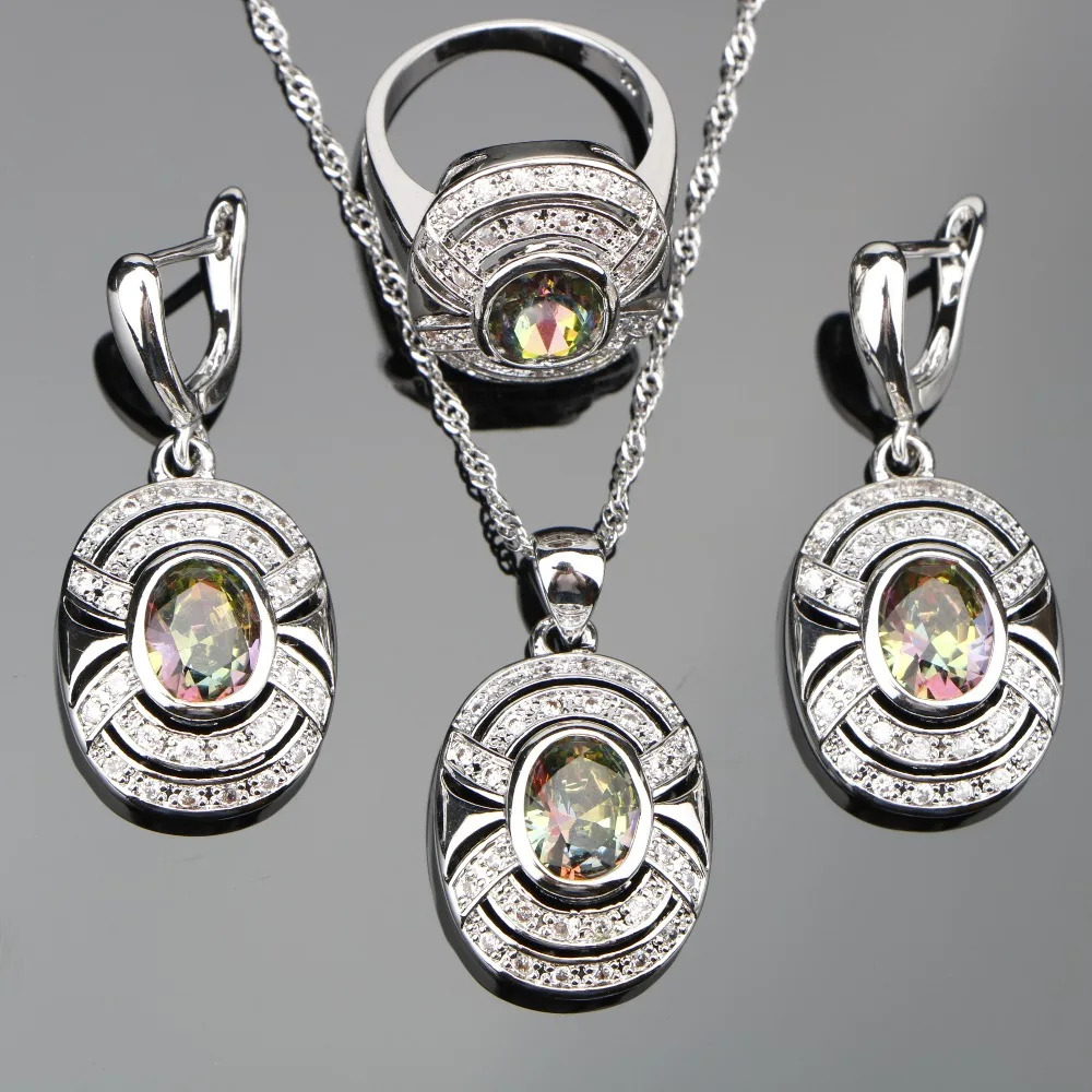 Promo 2018 Magic Rainbow Stones 925 Silver Jewelry Sets Women Wedding Zircon Earrings Rings Pendants&Neck