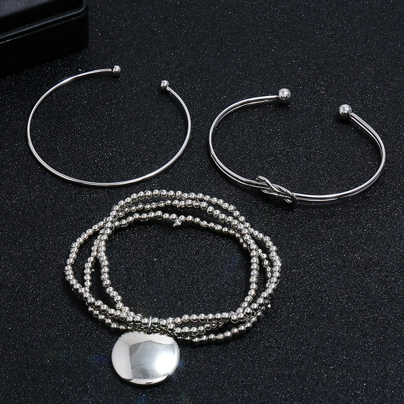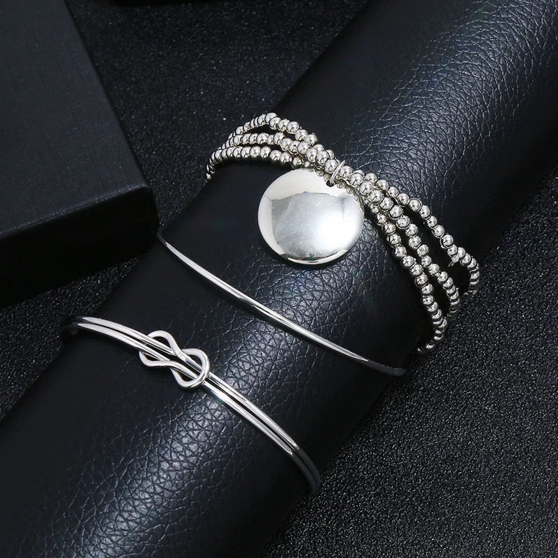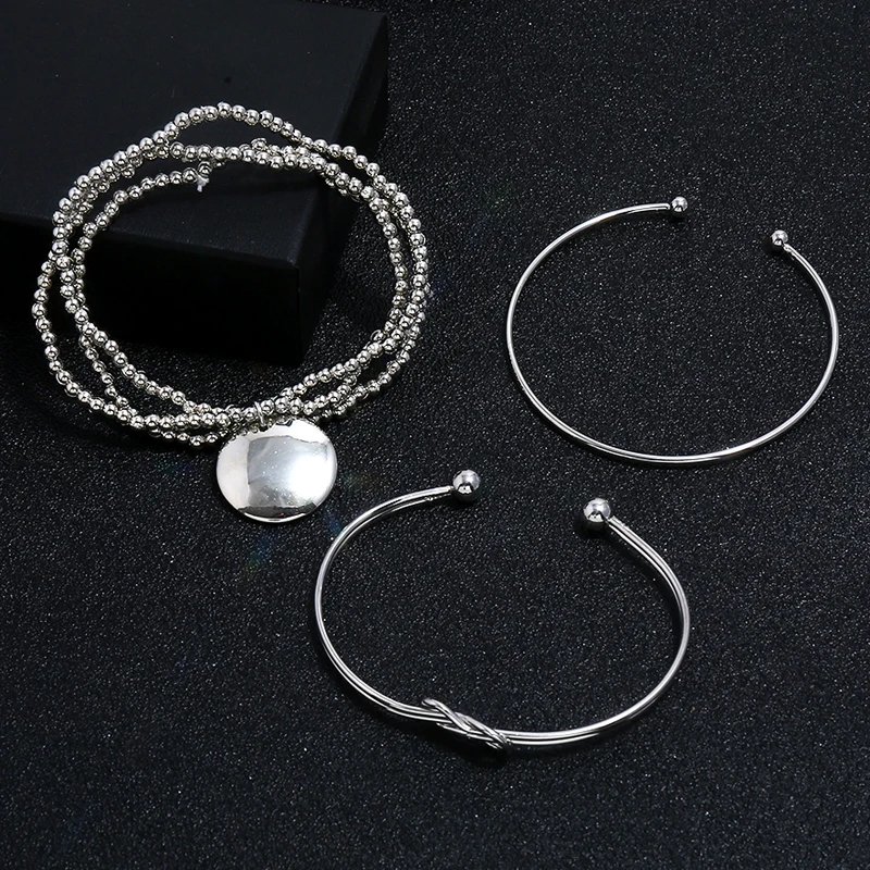 Promo 3 Pcs/set Silver Bohemian Geometry Bracelets Bangles Set Vintage Multilayer Charm Cuff Bracelet for