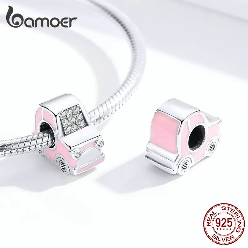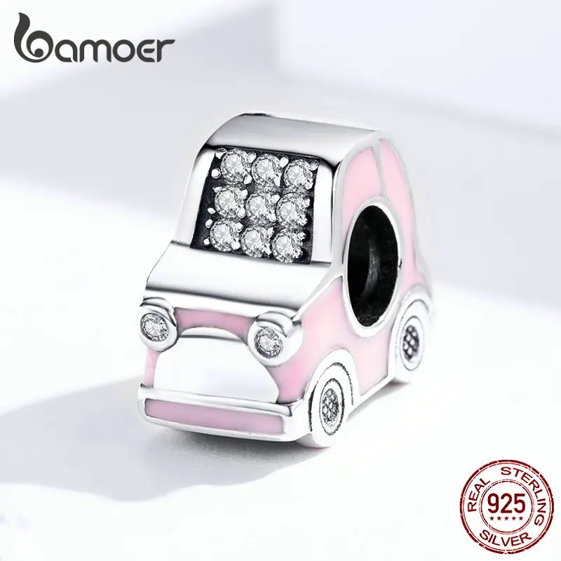 Buy bamoer Mini Car Pink Enamel Metal Charm Clear CZ Bead fit Female Original 925 Charms Bracelets or B