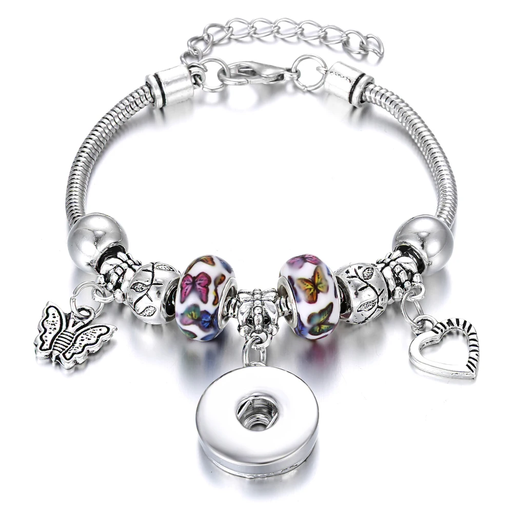 Buy New Christmas Snap Jewelry Bracelets Butterfly Charms Beaded Snap Bracelet Fit 20mm 18mm Snap Butto