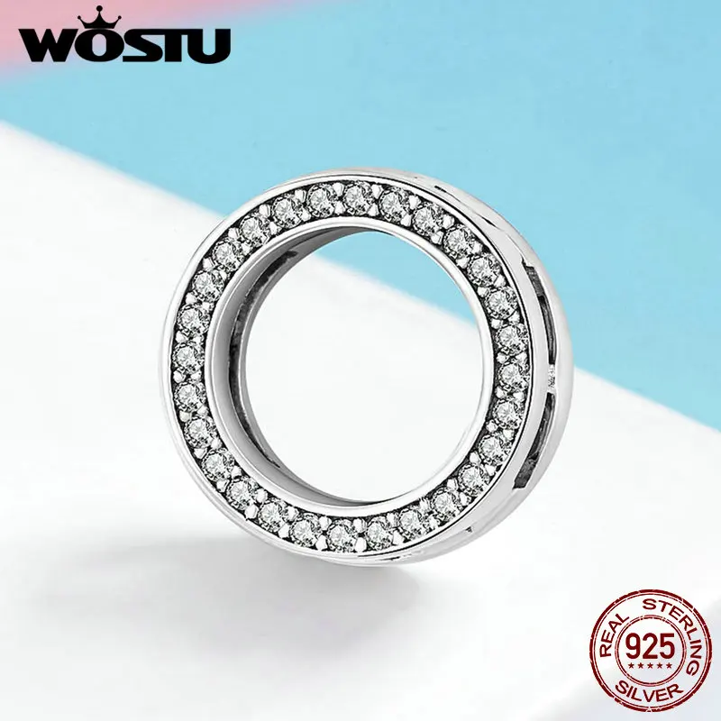 Promo WOSTU 925 Sterling Silver Circle Charm Round CZ Bead Bead Clip Fit Original reflection Charm Bracel